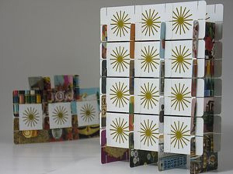 しかし、それだけではありません。「House of Cards」という名前の通り、このカードはいわゆる「カードの家」を作るためのものなのです。実際にトランプを使って作るカードの家は、高い技術もが必要ですし、ちょっとの衝撃で壊れてしまいます。凝ったデザインのものを作ることも出来ません。ところが、この「House of Cards」は、カードに6カ所の切れ目が入っています(長辺に二ヶ所づつ、短辺に一ヶ所づつ)。この切れ目を使ってカード同士を繋ぐことで、カードを使ったオブジェを作ることが出来るわけです。