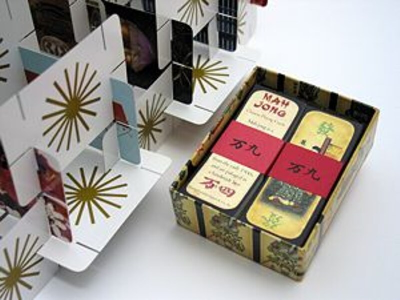 もう一つ、紹介したいカードがあります。イタリアでデザインされ、アメリカの会社が発売している麻雀牌カードです。横38mm×縦88mmという縦長いカードは、1900年代始めに作られたマージャン牌のデザインを2002年に復刻したもの。麻雀牌というと、小さな直方体をイメージしますが、香港やイギリスなどでは今でも大きくて薄い、板のような牌が使われています。このような細長いタイプのものも多かったようです。