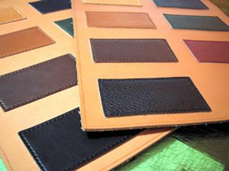 表紙、栞などに使う革を選ぶ。中々迷う。