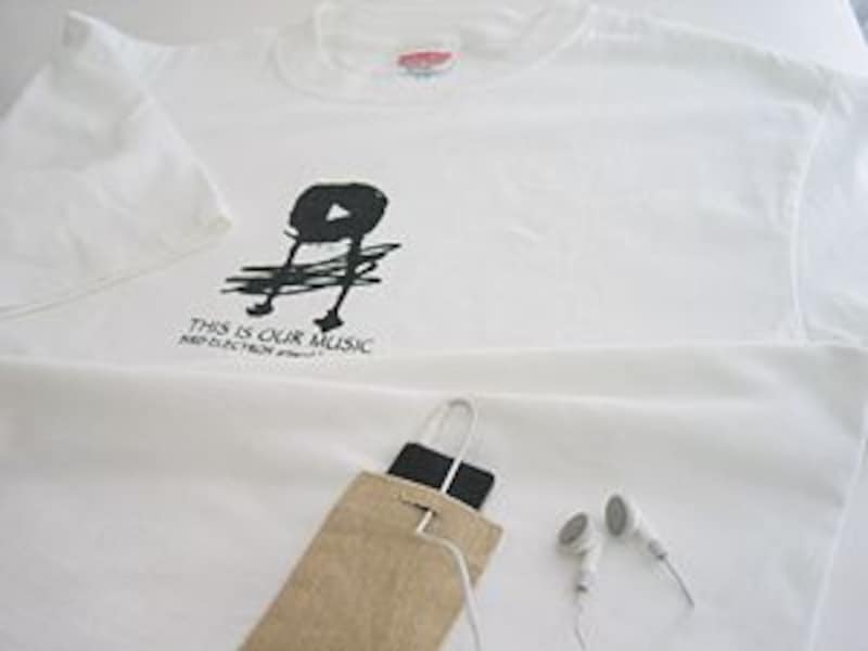 例えば、このshuffle用ポケット付きの「Shuffle Tシャツ」。このポケットが誂えたようにnanoにぴったりなのです。ヘッドフォンのケーブルをボタンホールに通せば、走ってもnanoが抜け落ちることはありません。