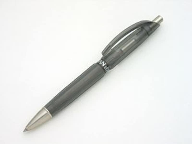 写真のブラックの他、ブルー、ホワイト、レッド、イエローとカラーバリエーションも豊富。ハーフスケルトンのボディのせいか、どの色も派手だけどしっとりとしている絶妙な質感です。ノックボタンの押し心地がスムーズで、クリック感が無いため高級感を感じます。ややぬめっとした感じの書き味が、持ち心地とのバランスが良くて、いつまでも書いていたい気持ち良さは、このペンだけのものです。