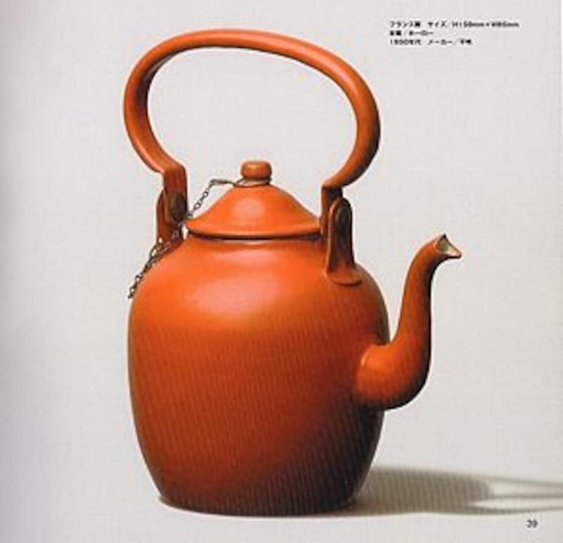 本を見てもらえば分かるように、「やかん」と一口に言っても、本当に沢山のバリエーションがあります。ラグビー部の魔法の水が入った凸凹の大きなやかんもあれば、イタリアの高度にデザインされた真ん丸のやかんもあり、日本の昭和30年代に流行した、麦茶を冷蔵庫で冷やす為の四角いやかんもあれば、フランスのオシャレなオレンジ色の縦長タイプのホーローやかんもあります。この本の中に収録されたやかんの中には、1924年のクリスマスに父親から娘に贈られたということを示す刻印が入ったやかんまであるのです。