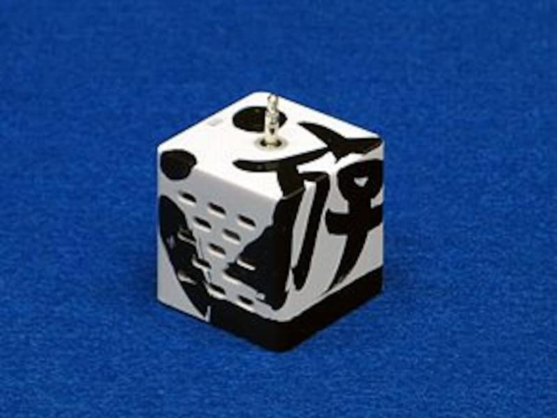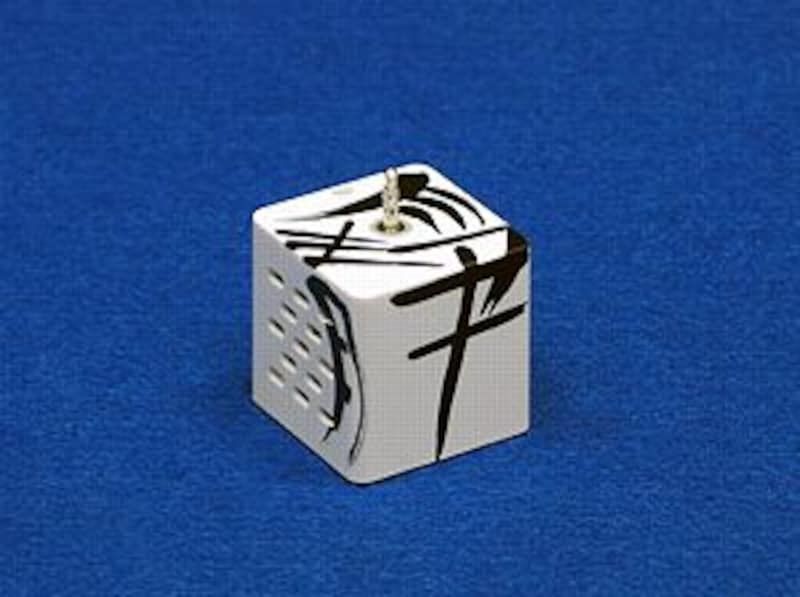 以上の三点は、書家の祥洲さんが、サイコロの形に書を書くという難題に取り組んだ作品の数々。各面を立体的に使って、墨の垂れまで計算に入れて書き上げた作品は、「静」「遊」「囁」と、このスピーカーにぴったりの文字が書かれています。この作品は、4月8日まで、東京は浅草橋のマキイマサルファインアーツで開催中の「祥洲の墨の世界2006」にて、1個9300円で販売されています。一点ものなので、欲しい方は急いで問い合わせてみてください。