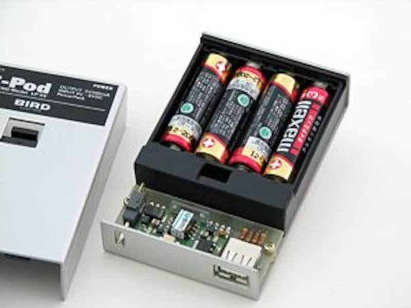 そういう現状を踏まえて、バード電子が発売したのが、「DC-Pod」というバッテリーボックス。この製品は単三乾電池4本を使って、DC5Vの安定した電源が得られるもの。業務用のDC/DCコンバーターを採用し、多少弱った電池を使っても安定した電気の供給が出来る上に、万が一の乾電池の異常にはヒューズによる保護機構が働き、出力側の異常にも過電流保護回路で対応するなど安全面への配慮も行き届いているのです。