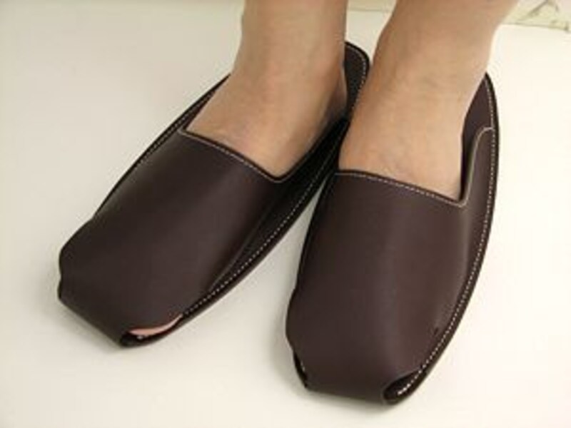 革の手触りを楽しむというのは、よくあることですが、革の足触りを楽しむという発想は、革靴でもあまりやりません。でも、このスリッパは、その革の感触が良いせいか、裸足で室内履きというのが最も似合うように思えるのです。底が薄いため、あまり硬い床には向かないということもあるのですが、それ以上に、この感触を味わいたいと思うのです。