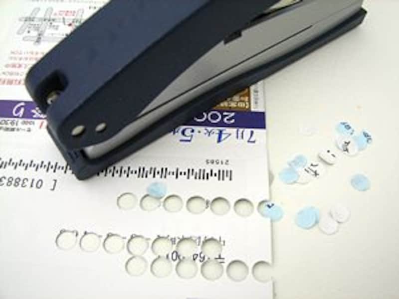 「name-off」は、簡単に言えば、郵便物の住所などの人に見られたくない部分だけを、パンチの要領で穴をあけて、見えなくしてしまうという道具です。郵便物の住所くらいならパチンと一回押すだけで何が書いてあるか分からなくなるくらいには、穴を空けてくれます。穴を空けた部分の紙は、本体内部に収納されて、後でまとめて捨てることが出来るので、もしゴミを全て拾われたとしても、ほとんど復元は出来ないと思われます。この、時間差で捨てられるというのは、このツールの大きなメリットの一つだと思います。