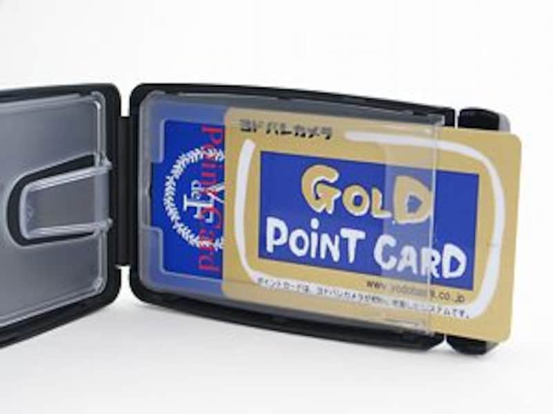 上部の三つのポッチがついた部分を押すだけで開き、カード類は中から指をスライドさせるだけで、簡単に出し入れ出来ます。もちろんスイカなどのICカードは中に入れたままで使えますし、半透明タイプのものなら、中に入れた物が外から透けて見えるので、地下鉄路線図などを仕込むといった使い方も可能です。