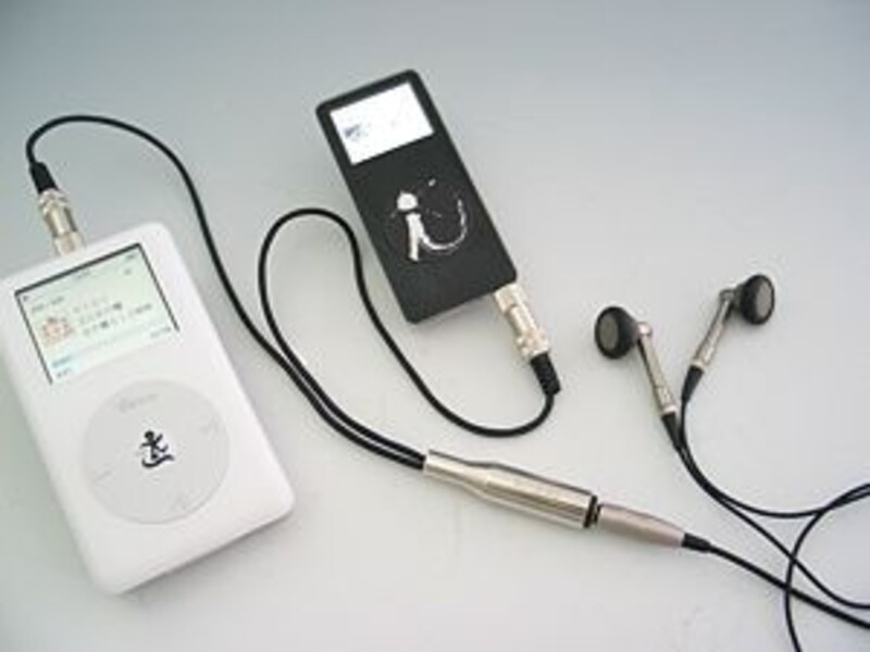 他にも、iPod+携帯電話(ハンズフリー用のヘッドフォン利用)とか、ニンテンドーDS+携帯電話、ビデオカメラ+iPodで撮影した映像に合うBGMを探すためのシミュレーションなど、様々なシチュエーションで使う事が出来ます。ショートケーブル2本分もないコンパクトなスタイルですし、カバンに入れておくと本当に、色んなところで楽しく使う事が出来るのです。また、iPodを1台しか持ってない人でも、iPodとパソコンのヘッドフォン端子を繋ぐことで、iTunes+iPodのミキシングが楽しめます。