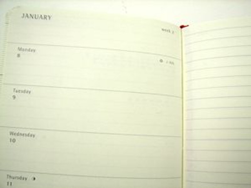 そのモールスキンのダイアリーですが、やはりモールスキンと言いますか、流石と言いますか、見事に「ノート」であることを忘れていないのが大きな特徴でしょう。一日一ページのタイプと、見開き一週間のタイプがあるのですが、どちらも、手帳というより日付が入ったノートという感じのレイアウトなのです。特に、見開き一週間と言いつつ、実は左ページに一週間分の日付が書かれていて、右ページは全面がノートになっている「WEEKLY NOTEBOOK」は、本来はノートなのだけれど、手帳の機能も持たせてみました、という感じで、とても面白い使い方が考えられそうです。