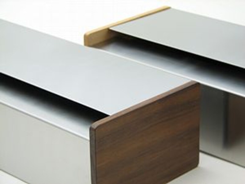木とステンレスとマグネットのシンプル構造によるシャープなデザイン