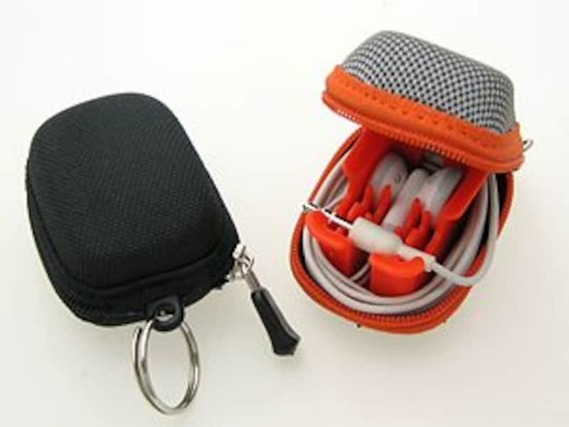 イヤフォンケーブルを巻き付ける、リール的なものを備えたケースもあります。この場合、イヤフォンそのものを守る、という機能は無いのですが、とりあえず、ケーブルが簡単にまとまるだけでも、持ち歩いていてのストレスが軽減するものです。