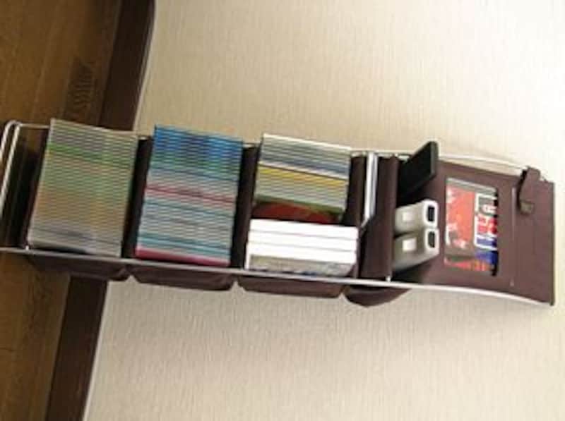 収納量は、一段にCD約17枚。DVD-Rなどのスリムケースなら約35枚収納できますから、3段でCD51枚(スリムケースで105枚)。買ってきたCDやDVD、ゲームなどの一時収納箇所としては十分な収納量と言えます。最上段には、今使用中のCDなどのジャケットをディスプレイ出来ますし、リモコンなどの小物を収納するスペースもあります。Wiiリモコンなどの収納に、これが思いの外便利でした。