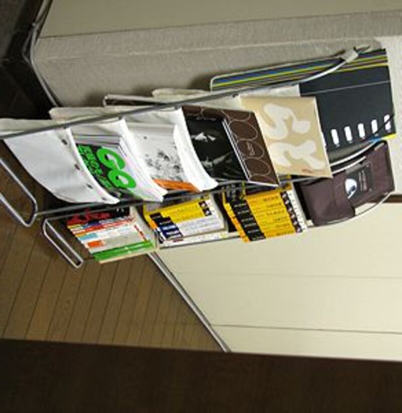 買ってきた本の一時収納場所としては、リビングの隅に雑誌用のストッカーと並べて使っています。こうしておけば、家族中で利用できて便利です。オフィスなどでも使えそうですね。実際に置いてみると、本当に場所を取らないので、通路などに何気なく置くことが出来て、収納場所が広くなったようにも感じます。