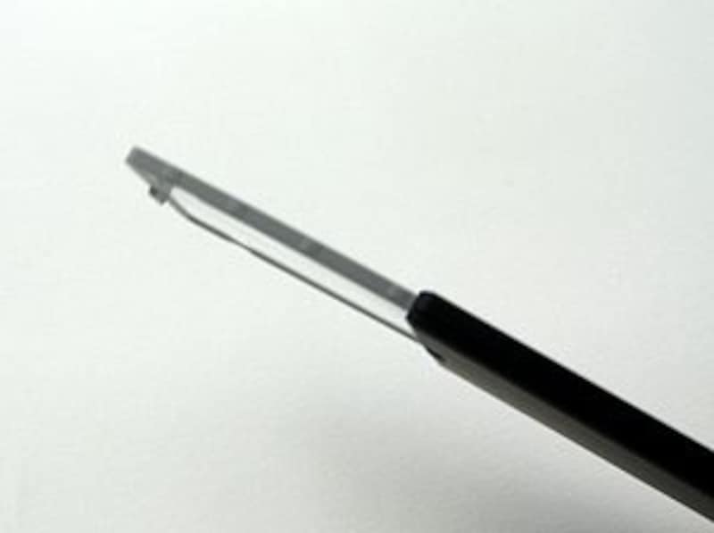 LEDは新開発のフラットタイプが採用されています。光源が球形ではないため、光が拡散せず、見易くなっているような感じですね。色も、真っ白なので、白い紙などの電球の明かりでは見辛いものでも、クリアに見ることが出来ました。ルーペ部分の出し入れで点灯消灯が行えるのも便利ですし、何より、このサイズで、ここまで明るい照明も内蔵しているというのは驚きです。電池はボタン電池「CR2025」を2個、連続5時間の点灯が可能。手に入りやすい電池が使われているのも嬉しい配慮です。