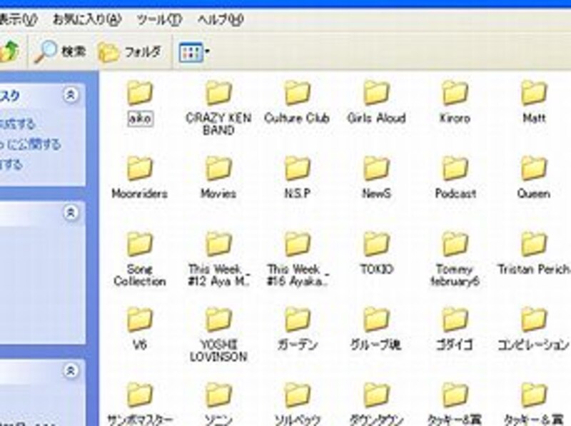 すると、上の図のように、中にはアーティスト名が書かれたフォルダが並んでいます。ここから、好きな曲、好きなアルバムを探しましょう。