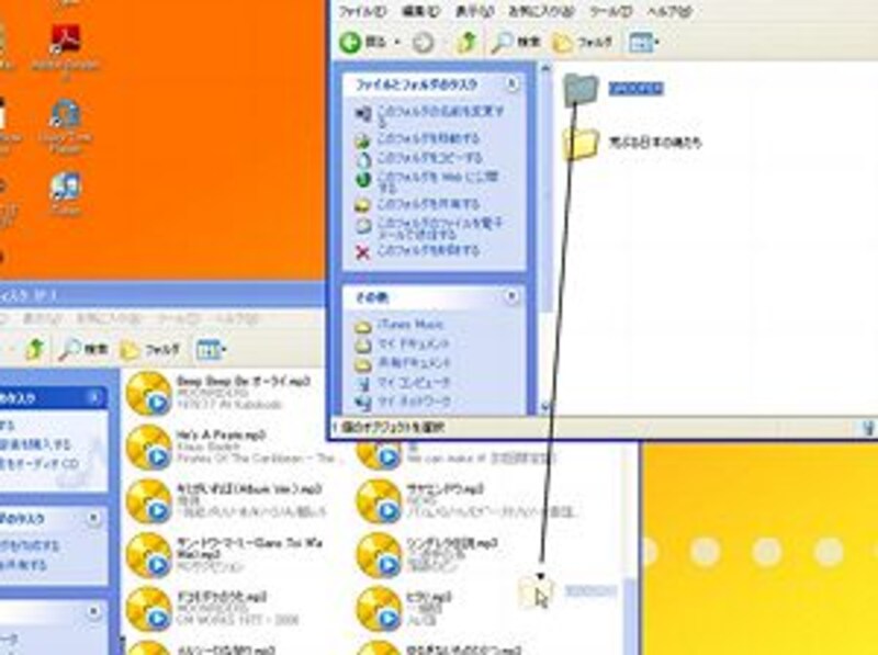 曲やフォルダをドラッグしてUSBメモリにコピー