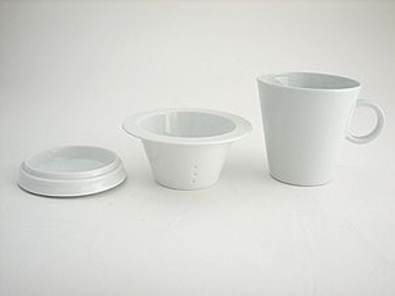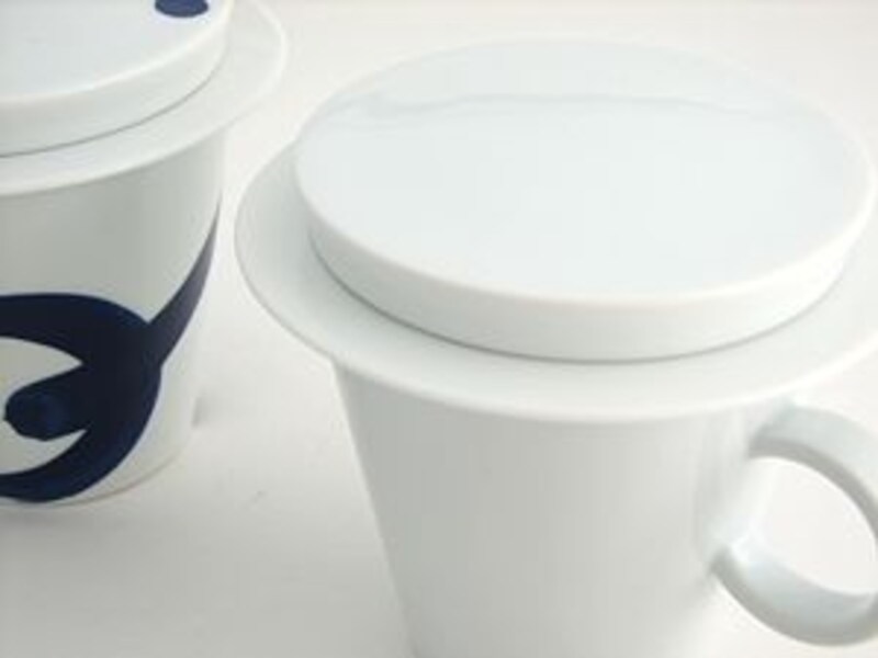 ただ、一種類だけ気になっていたマグカップがありました。2006年の春にデザイナーの近藤康夫さんにインタビューをした際に見せていただいた、有田HOUENシリーズの新作(当時)の茶漉し付きマグカップです。その時は、まだ発売も決まっていなかったため、当時準備していたガイド納富によるお茶の本「drinkin'cha」(ロコモーション・パブリッシング)や、このガイド記事で紹介したかったのですが、その時はタイミングなどが合わず紹介出来ませんでした。