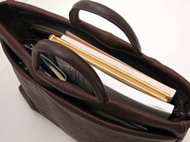 鞄を開けたまま使えるからこそ可能な、大型書籍や資料の縦方向での収納