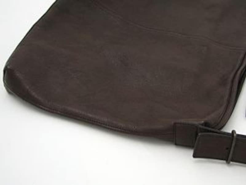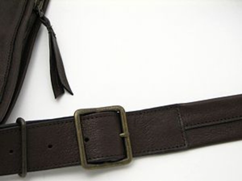 全体が一つの袋のようなものなので、もし壊れやすいとすれば、それはショルダーストラップとの繋ぎ目でしょう。なので、その部分はしっかりと補強されています。また、ストラップは柔らかい革が二重になっていて、縫い目が外側に来るようになっているので、多少荷物が重くなっても肩が痛くなりません。ストラップの長さも、メッセンジャーバッグ風の短さから、腰の下に下げるような長さまで、かなり幅広く調整出来ます。