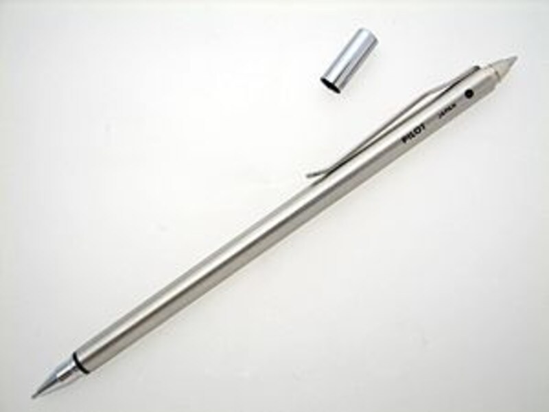 NAVAの「MINIPEN」や伊東屋のオリジナル手帳用ペンが、ジャストサイズになるように作られていますが、ガイド納富のお勧めは、写真のパイロット「バーディー・スイッチ」(525円)です。この手帳用ペンは「Lim Card Sleeve」に入れると多少長いのですが、それも許容範囲。それ以上に525円という価格で、実はシャープペンシルとボールペンの2 in 1だという事に感動します。