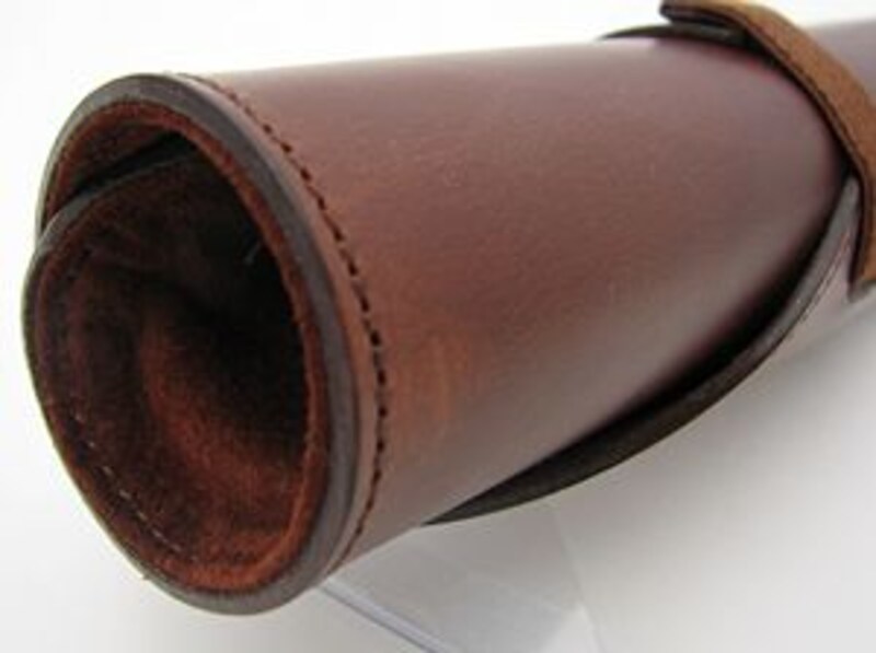 裏地は眼鏡を傷付けずに守る手触りの良い人工スエードを使用。マチは高級感のあるPスエード、眼鏡を固定する部分も表と同じ革を使用。しなやかなので巻き取るのに力は要らず、くるくると巻き取ることが出来ます。マチが深く取ってあるので、かなり適当に眼鏡を放りこんでも、きちんとケース内に収まり、そのまま巻き取れるので、出し入れもスムーズです。見た感じよりも、本当に楽に出し入れが出来るので、ちょっと感動します。
