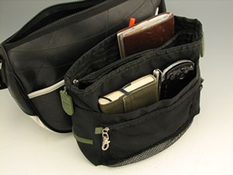 さらに、ガイド記事「鞄の中と日常業務を行き来するモバイルな袋」で紹介したTintamarの「VIPバッグ MEN VIP」を入れると、これがジャストサイズ。ショルダーバッグの中が三つに区切られる上に、ポケットも増えて、収納物が見事に整理されました。本来の鞄としてのポテンシャルが高いので、こういったアイテムと組み合わせてカスタマイズすることで、さらに使いやすくなるわけです。実際、ストラップとバッグ・イン・バッグを組み合わせたショルダーバッグは、ちょっと他に類を見ない、多機能と耐久性と扱いやすさが見事に凝縮された鞄になりました。これは試して貰う価値アリです。