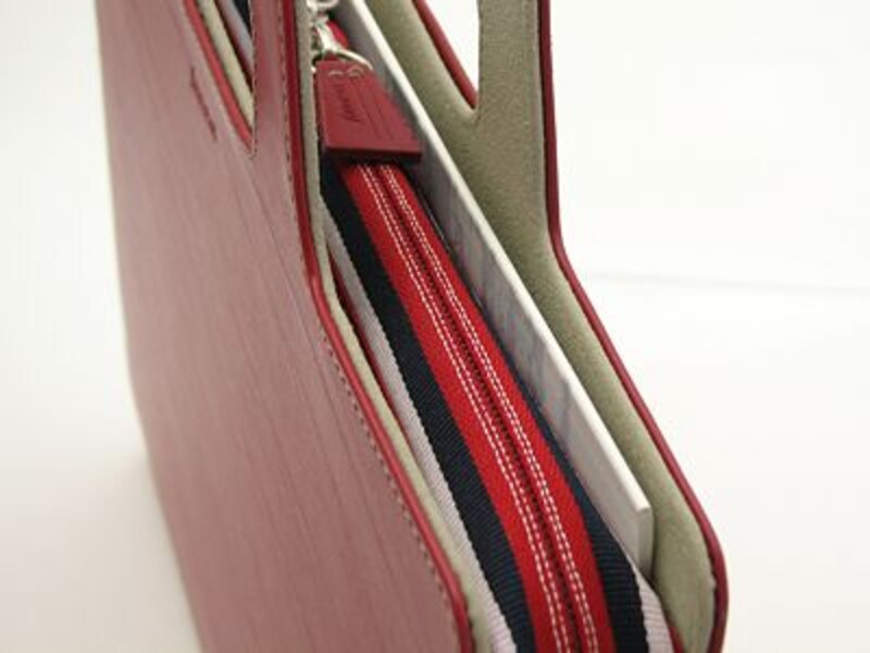 製品は、把手付きのモノと、把手無しのモノの二種類があり、どちらのタイプも色は赤と黒の二種類。また、一見革のようにも見える外装はポリウレタン製。そのため牛革に比べ軽くて持ち歩きやすく、価格も抑えられています。また耐久性にも優れた素材なので、ハードに使っても安心なのが、このような書類などを持ち歩く情報ツールとして嬉しいところです。