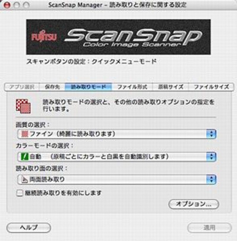 接続すると、自動的に「ScanSnap」が認識されるので、これで準備OK。デフォルトの保存先や、画質などを設定すれば、後は、次々と栞を取り込んでいくだけです。