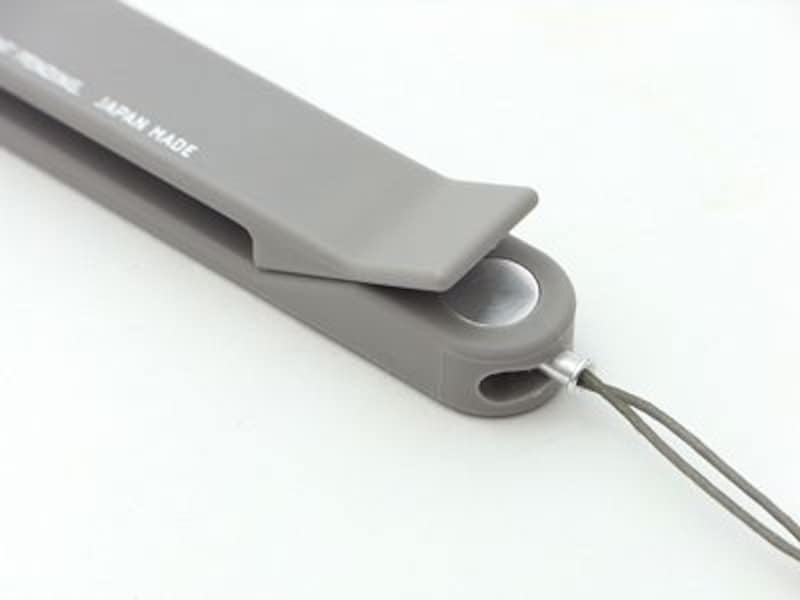さらに、このストラップ、全体がクリップ状になっていて、ポケットやカバンなどに差込んで装着すると、多少引っ張ったくらいでは外れないように出来ています。また、使われている紐などのパーツが、どれも、安っぽくなく、きちんと重さや力を受け止めてくれるだけの耐久力があるようです。