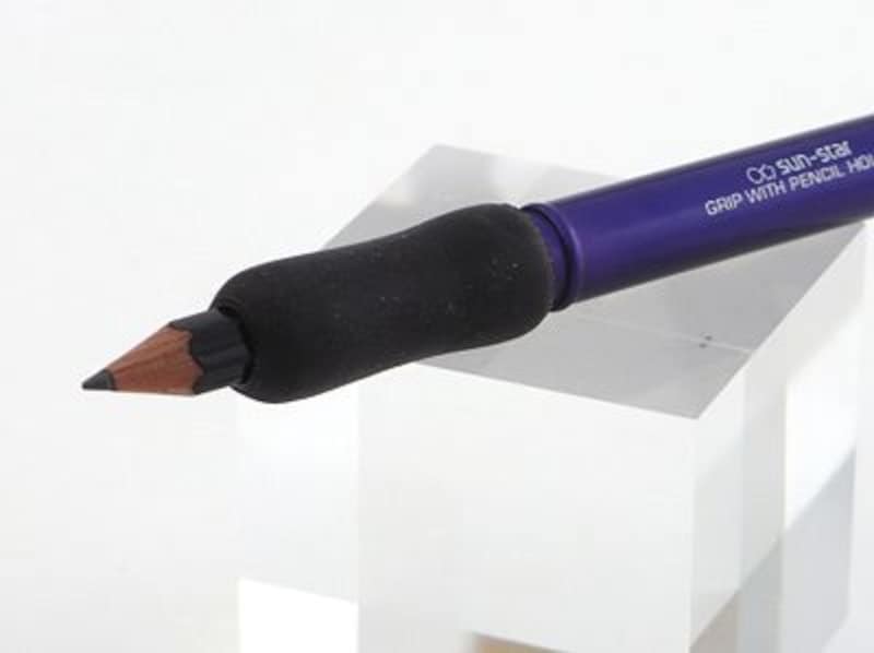 サンスター文具の補助軸は、大きなシリコンラバーグリップが付いています。この指に馴染む太いグリップが、鉛筆の持ち心地を大幅にアップしてくれます。