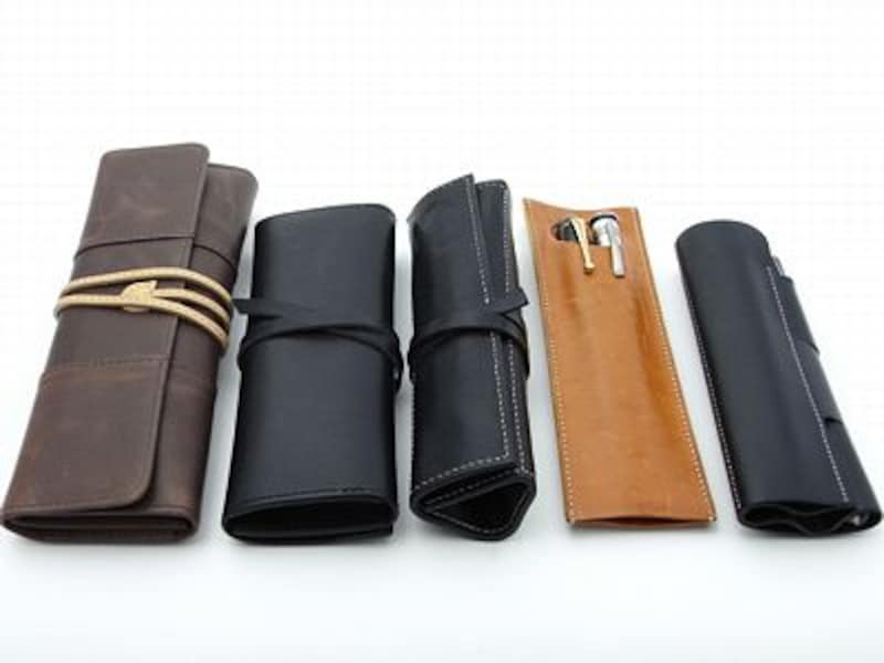 | ガイド納富のペンケースコレクション。一番右がLim Pen sleeve。そのコンパクトさが分かると思う |
