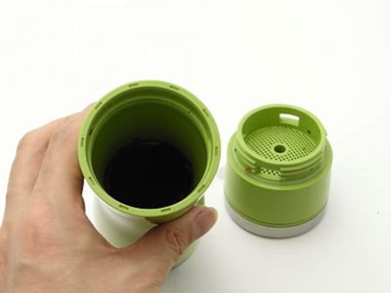 | タンブラーに茶漉しが内蔵されているような構造 |