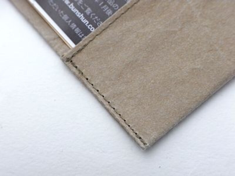 カバンと同じく、袋縫いされているので、二重になっていて強度への信頼性が高く、縫い目も目立ちません。手間はかかるものの、縫ったという、布製品的な見た目ではなく、まるで糊で貼ったかのように見える、その細かい所にも「紙」であることにこだわったデザインが、製品としての価値を高めていると思うのです。