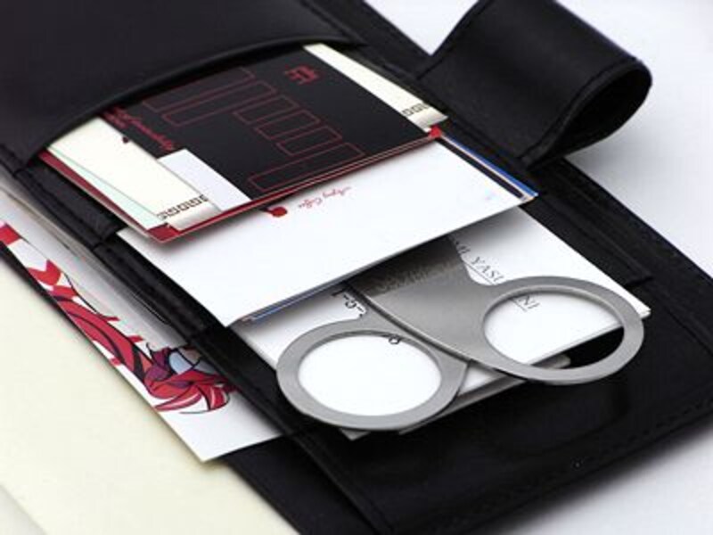 手帳のカード入れに差込める薄さというのが嬉しいのです。しかも、ハサミを閉じていると、尖った部分がなくて安心出来るのも、このハサミの良い所だと思います。中膨れのデザインも秀逸です。