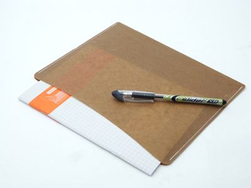 | A5サイズのWAX PAPER POCKETにはA5サイズのノートと筆記具を収納できる |