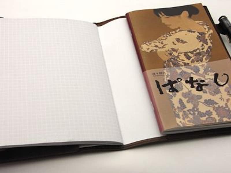まあ、片面にしか書けないのは、後で整理するのには便利なので、目をつぶるというか、取材先などでは、ここから抜き取って使えば問題ないですし、ペン差しからペンを抜いて、それで筆記すれば、グラグラする問題も片づきます。そんな些細な欠点はどうでもいいくらいに、この「ごらん」は使っていて嬉しくなるカバーなので、個人的には、ほんとどうでもいいのですが(笑)。