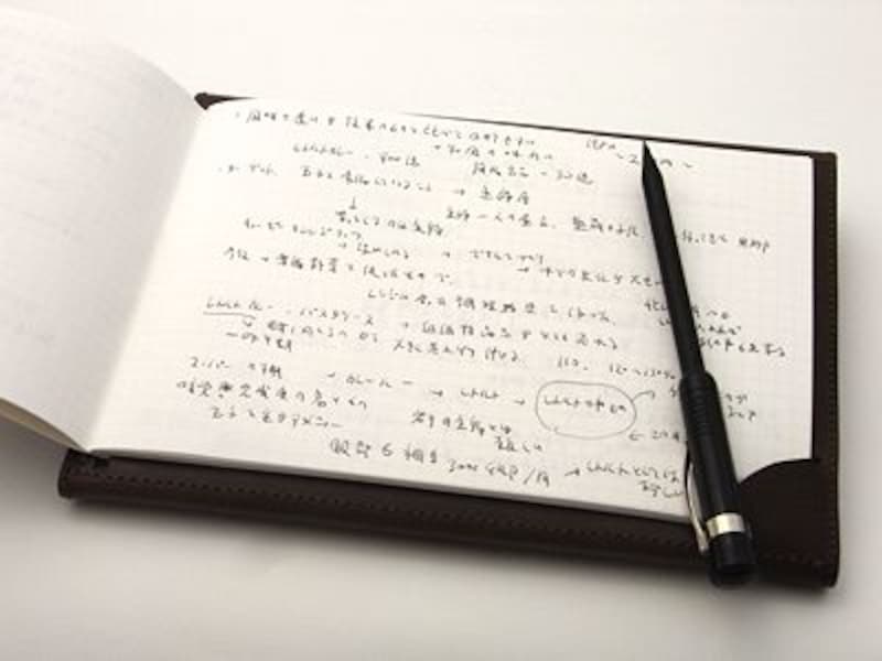 | ノートのほかに薄い小冊子や名刺などを挿し込んで使うのも便利 |