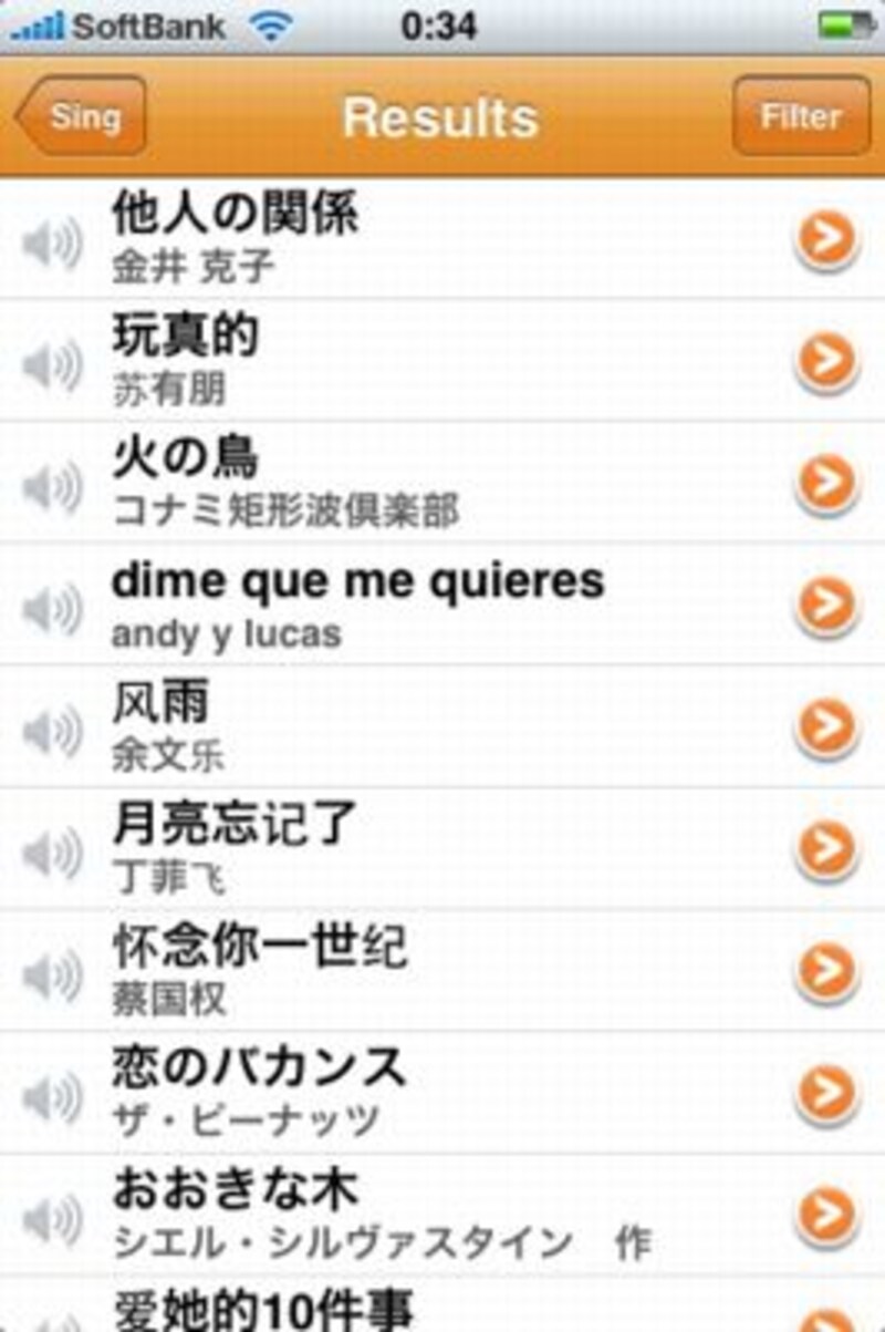 機能は簡単、iPhoneのマイクに向かって鼻歌を10秒以上歌えば、その曲目を検索してくれるというソフトです。これが、試してみるとかなりのヒット率で、その実用性に驚いてしまいました。しかも、世界中の歌に対応するのです。検索結果は10曲を越えることもあるのですが、大体リストの一番上に正解が来ることが多いようです。それくらい音声認識の精度が高いようで、十分実用の範囲だと思いました。