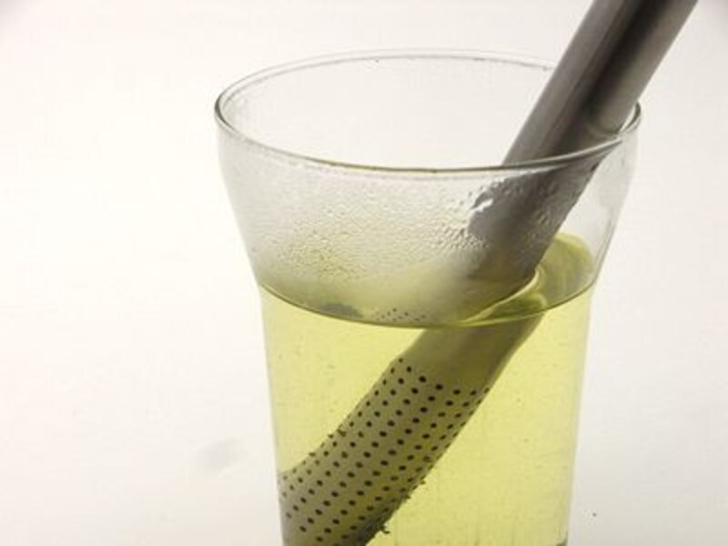 簡単に言えば、穴が開いた筒に茶葉を入れて、カップに浸せばお茶が入るという、アイディアとしては、とてもシンプルなのですが、実用性がやけに高い茶道具です。何せ、これ一本で計量スプーンもティーポットも混ぜるためのスプーンも要らないのですから。ついでに、割高なティーバックも要りません。
