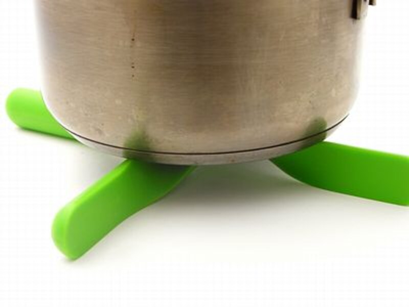見た通りの、スティックがプロペラ状に広がって鍋敷きになるというアイディア。このスタイルの良さと便利さには前から目を付けていたのですが、「男のこだわりグッズ」という括りでは紹介しにくいと思っていたので、ここで紹介出来たのは嬉しいです。本当に単純な道具ですが、素材はシリコンを使い、人体への害がないように工夫され、表面はざらっとした滑り止め加工になっているなど、細部まで配慮が行き届いた製品です。
