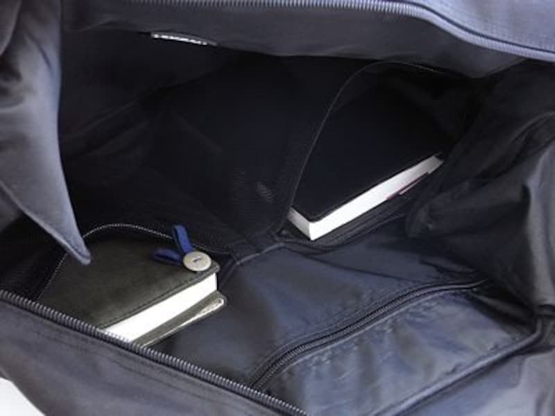 | パソコン収納スペース以外の内装はシンプルに、手帳や本が入るポケット×2と、大きなファスナーポケット |
