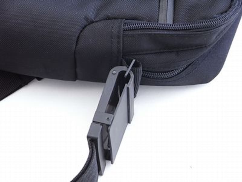 さらに、ショルダーストラップの装着部分も、ベルトが必要以上に振られることがないように、専用の留め具でベルト全体を固定する方式。それでいて市販のストラップに付け替えることも出来るフレキシビリティもレクソンらしい細部への目配りと言えるでしょう。
