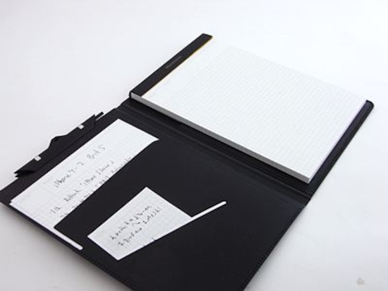 | 最小の大学ノート「NADD」+専用ケース「ポケッティア」に装着。クリップ主導型のメモも面白い |