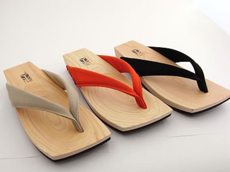 本体は、静岡産のひのきの削り出し。元々、ひのきの下駄というのは、その足へのフィット感と言うか、足裏にあたる木の感触の心地よさが魅力です。そのひのきの感触を、絶妙な曲線と、見事に磨かれた表面の仕上げの見事さがさらに強調。ちょっと驚くほどの履き心地の良さでした。