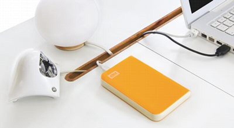 つまり、机の両端に置いたスピーカー、右奥にiPod、右手前に携帯電話、中央にノートパソコン、左側にドキュメントスキャナ「ScanSnap」、左奥に照明機器を置いても、ケーブルがほとんど露出しないことになります。ノートパソコンからは電源ケーブルとUSBケーブルが各一本づつ出ているだけで、電源はもちろん、各周辺機器から、ハードディスクなどにも繋がっているのに、見た目的には、ケーブル二本のみです。ノートパソコンもiPodも携帯電話も、それぞれにきちんとデザインされている製品が多い今、ケーブルやACアダプターで美観を損なわないだけで、それらのツールの見た目もかなりアップするものです。