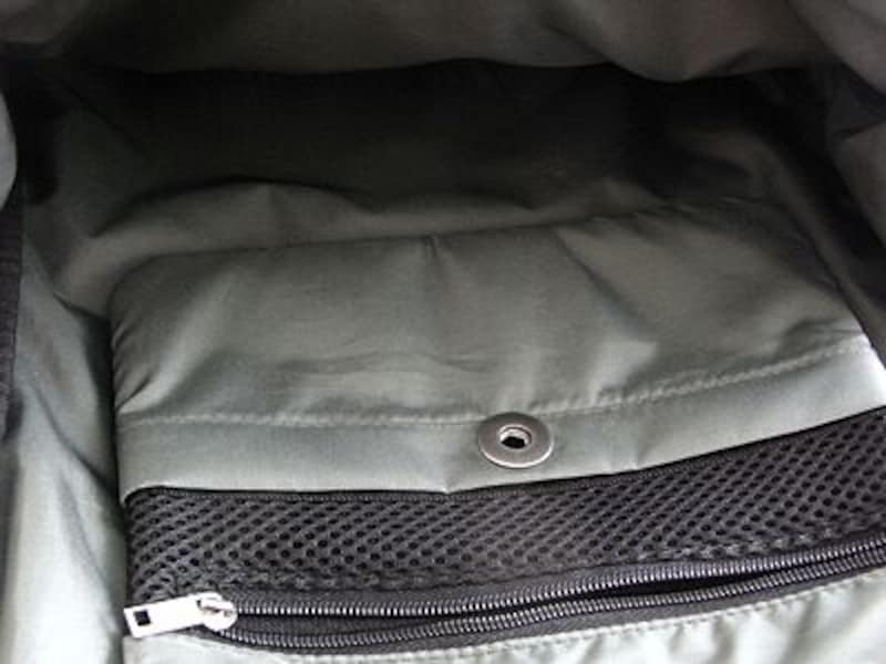 | 背面はベルクロで留める、大きなポケット。雑誌などを入れておくのに便利 |