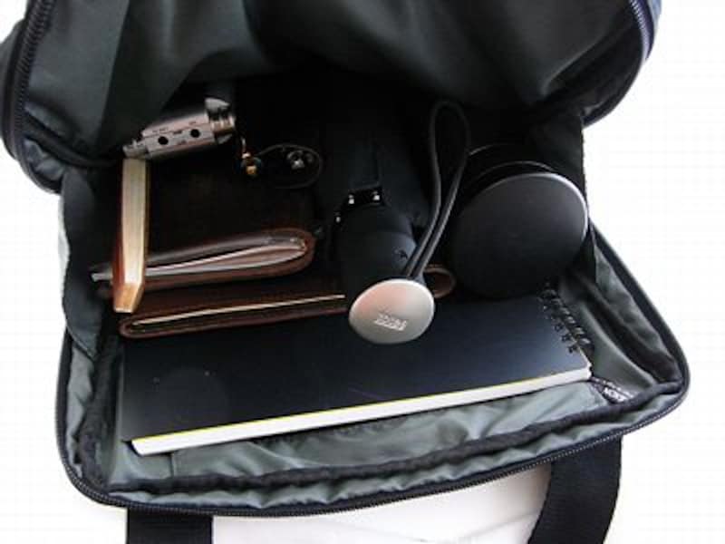| スマートな外観ながら、柔らかい素材と袋状の構造のため、かなり沢山の荷物を入れることができる |