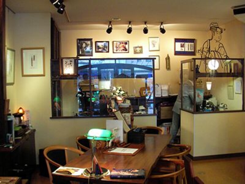 | 2008年3月、ガイド納富が訪れた時点での万年筆博士店内。手前のテーブルで面談しながらオーダー。奥のガラスブースで50年を越えるキャリアを持つ田中晴美氏が万年筆を作られている。 |