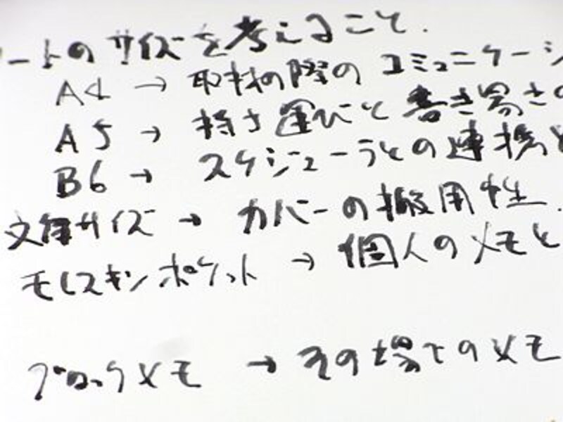 中の紙は描画専用紙、つまり画用紙で、太い万年筆や水性ボールペンでも裏写りしません。もちろん墨だって使えます。太い万年筆や筆で、がっつりと大きく文字を書く、そんな使い方が似合うノートなのです。サイズは、W125×H182×D7mmと、新書よりも一回り大きな「PH-001 ノートブック」と、W72×H125×D7mmの手のひらサイズの「PH-002 メモパッド」の二種類。シンプルな装丁なので、縦使い横使い共に違和感なく使えます。糸綴で開きやすく、80ページと、使い切りやすい厚さです。この80ページを2週間くらいで使い切れれば、数年後には船中八策くらいのアイディアが生まれるかも知れません。