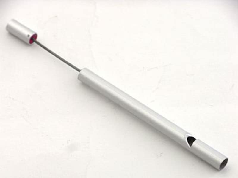 電子楽器ではなくても、音が出るモノは魅力で、これは京都の民俗楽器専門店コイズミで購入した笛です。先端の短い部分を持って、パイプに入れたり出したりすることで音程が変わる仕組み。これがまた、音の変化が面白くて、吹き始めたら止められません。手作りだし、価格が安いのも魅力です。